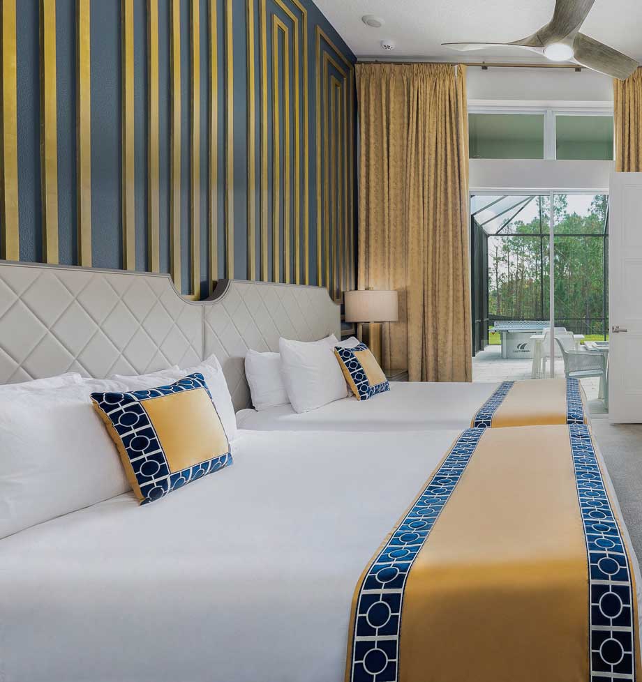 Experience next-level luxury in our 11-bedroom estates, ideal for vacations, events, or retreats. These upscale estates feature either a massive dining/conference room or bowling alley, a private spa pool, gym, game loft, full arcade, and even a home theater. With Disney and top attractions just 20 minutes away, you may never want—or need—to leave!