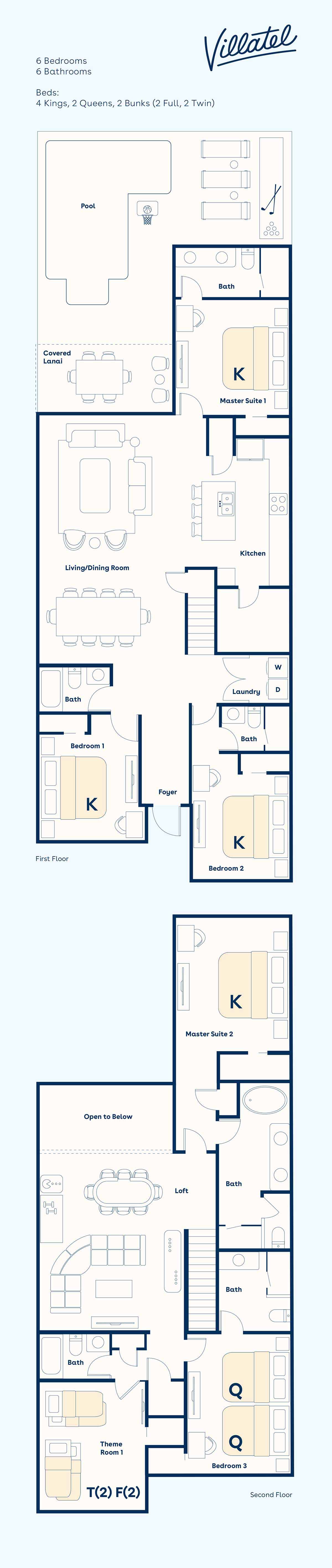 Experience your best-ever Orlando getaway at this gorgeous, brand-new, 6-bedroom villa, situated STEPS from Universal Orlando and all of the famous shopping, dining, and entertainment of International Drive! This dream home includes a designer, open-plan living & dining area, a private swimming pool and spa, and 6 spacious bedrooms–one of which is a fabulous themed room for kids. All of this and more for a per-bedroom cost that’s a lot less than comparable hotels nearby!