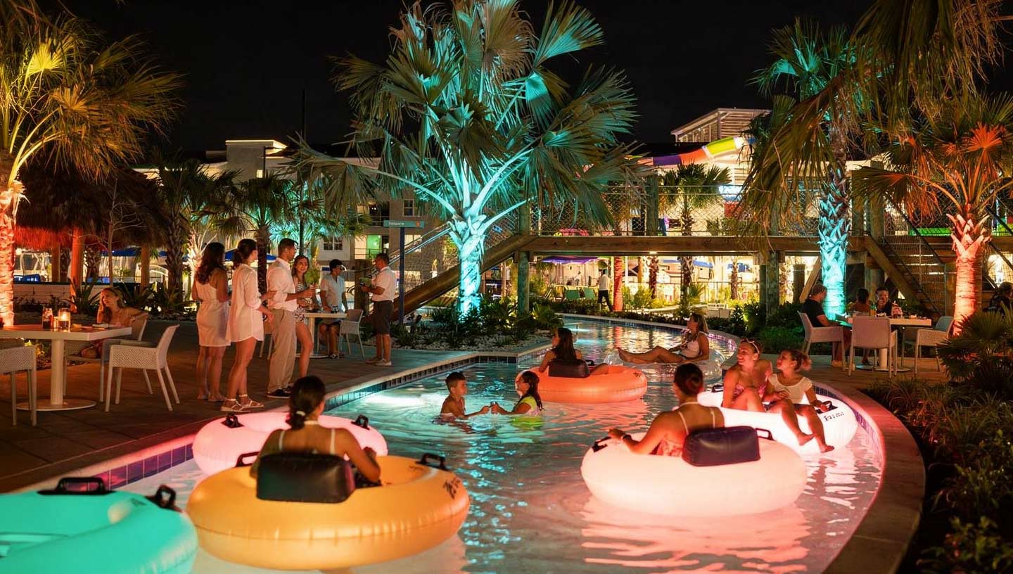 When the sun goes down, the party lights up. Exclusively during Spring Break weekends from March 27 - April 10, head to Aqua Bay for an evening party featuring a live DJ, neon floats, glow-in-the-dark wearables, air brush and hair wrap stations, a neon drinks menu, and more.