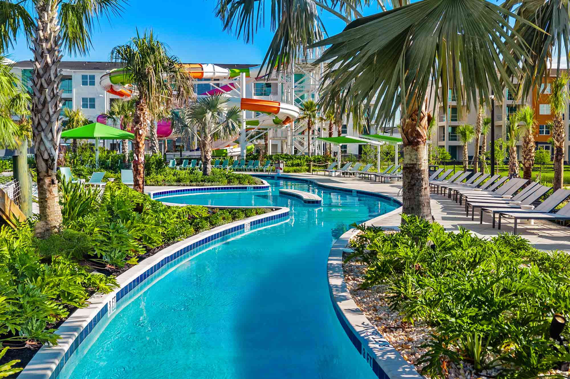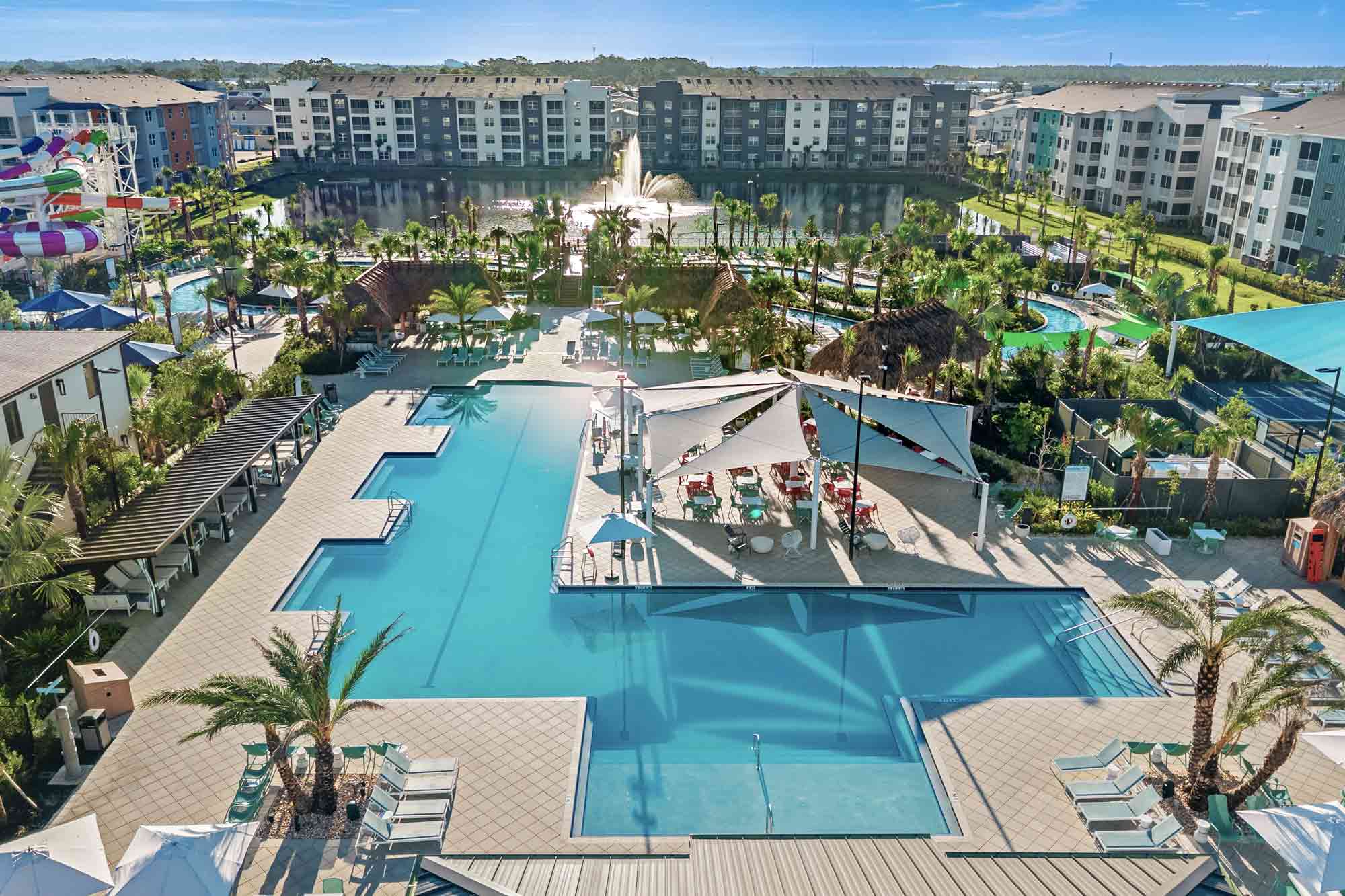 Upgrade your pool day at Aqua Bay with a private cabana rental. Kick back on plush loungers and enjoy shaded comfort, plus space to spread out and store your belongings. Premium poolside seating is also available, and offers great views and easy access to the fun.