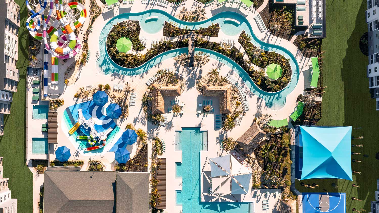 The daily resort fee covers unlimited access to Aqua Bay water park and all additional resort amenities for all guests staying on property. Cabana rentals/ reserved poolside seating, Topgolf swing suite play time, and food/beverages incur additional fees.