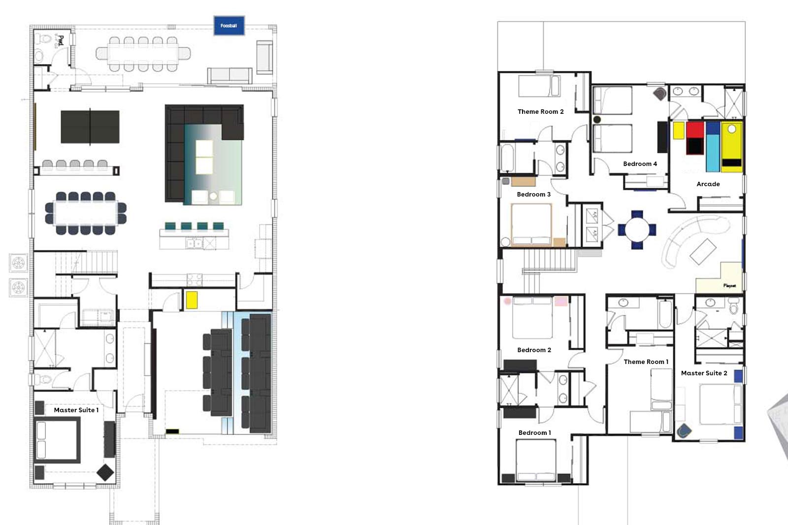 The kids will marvel at the wizard-themed bedroom, featuring life-sized wizards, surrounded by magical wall art. Just down the hall, the Hawaiian-themed bedroom showcases incredible beach décor and furnishings, sure to wow the little ones.